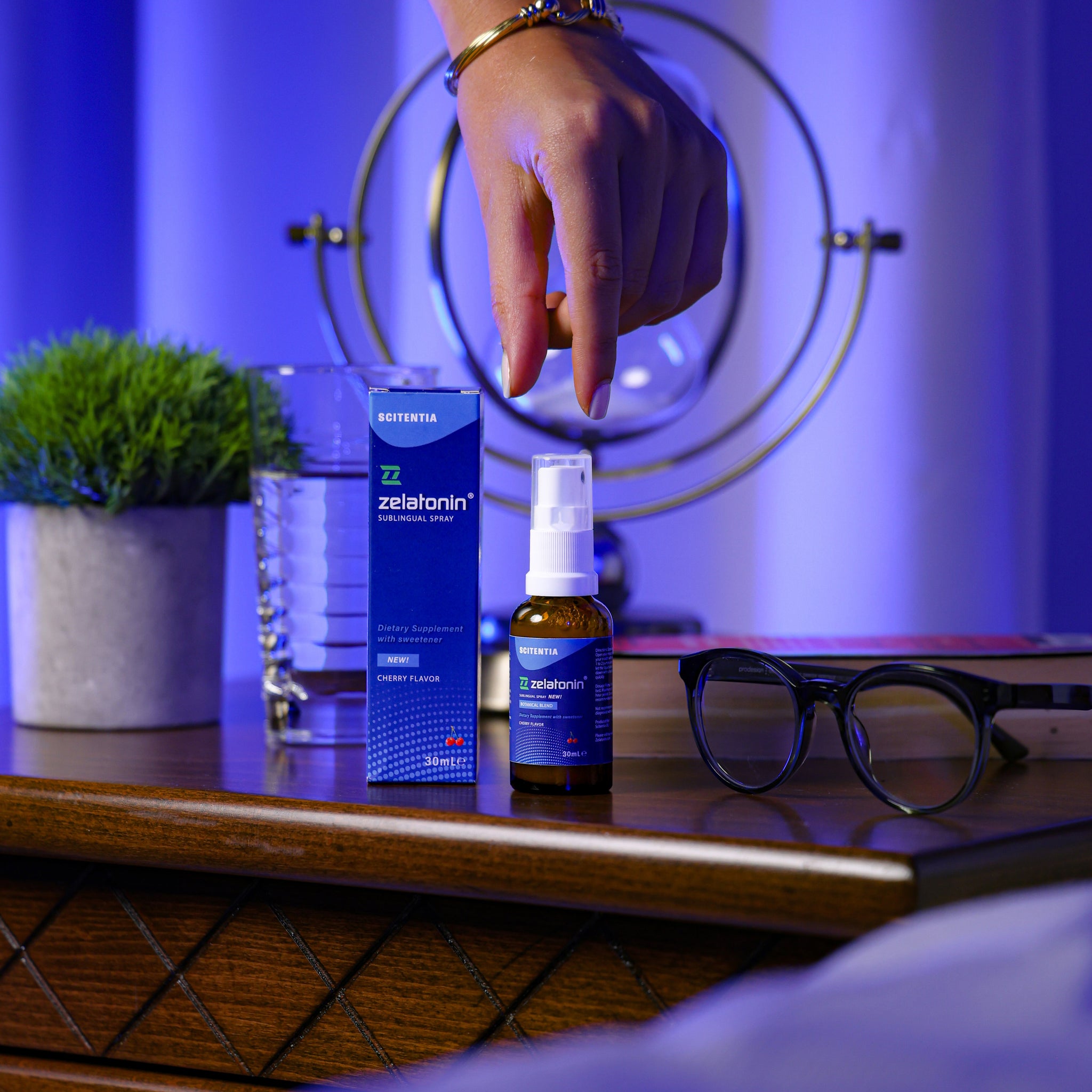 Zelatonin® is delivered in a spray format. Right before sleep, lift your tongue and spray, by depressing the pump, 1-2 times. Do not wash down with liquids right away.